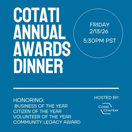 The Cotati Chamber of Commerce is excited to bring back our Annual Awards Dinner after a few years of hiatus, and we’d love your help in recognizing the people and businesses that make Cotati shine.